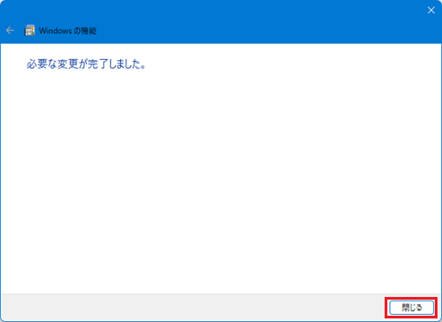 IIS が有効になると、以下の画面が表示されますので、「閉じる」をクリックします。