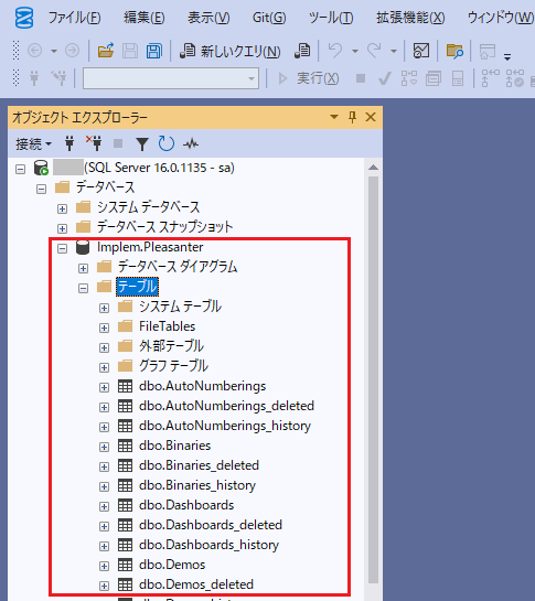 - SQL Server Management Studio(SSMS) で Pleasanter の DB 確認